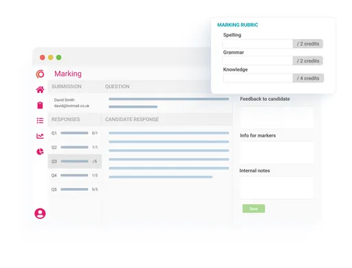 Written and recorded answers can be reviewed against a set criteria or marking rubric, directly on the Synap system, with automatically calculated grades.